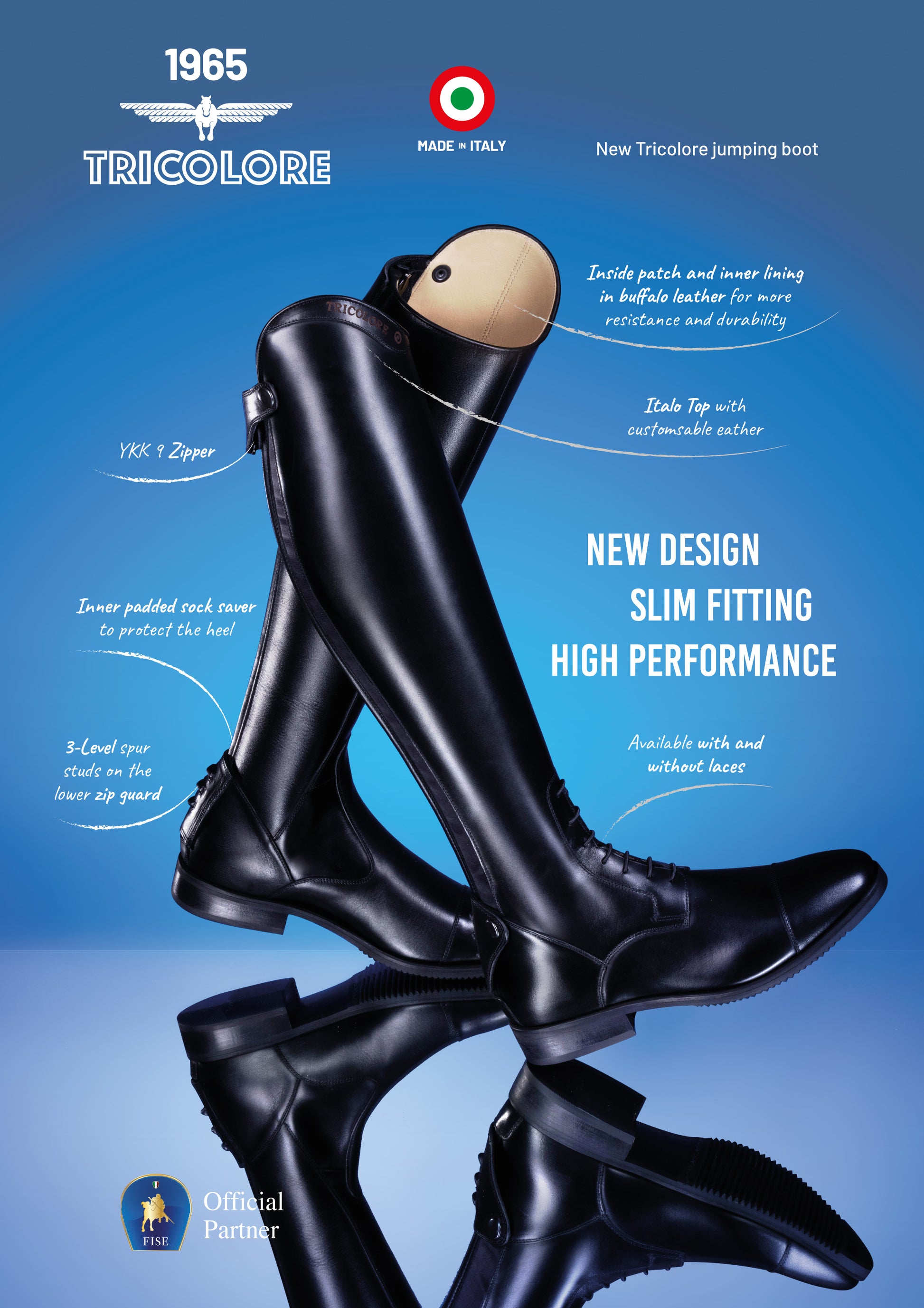 Discover the Tricolore Italo model from De Niro Boot Co.’s entry-level range, created especially for riders seeking comfort, flexibility, and a modern design without compromising on quality.