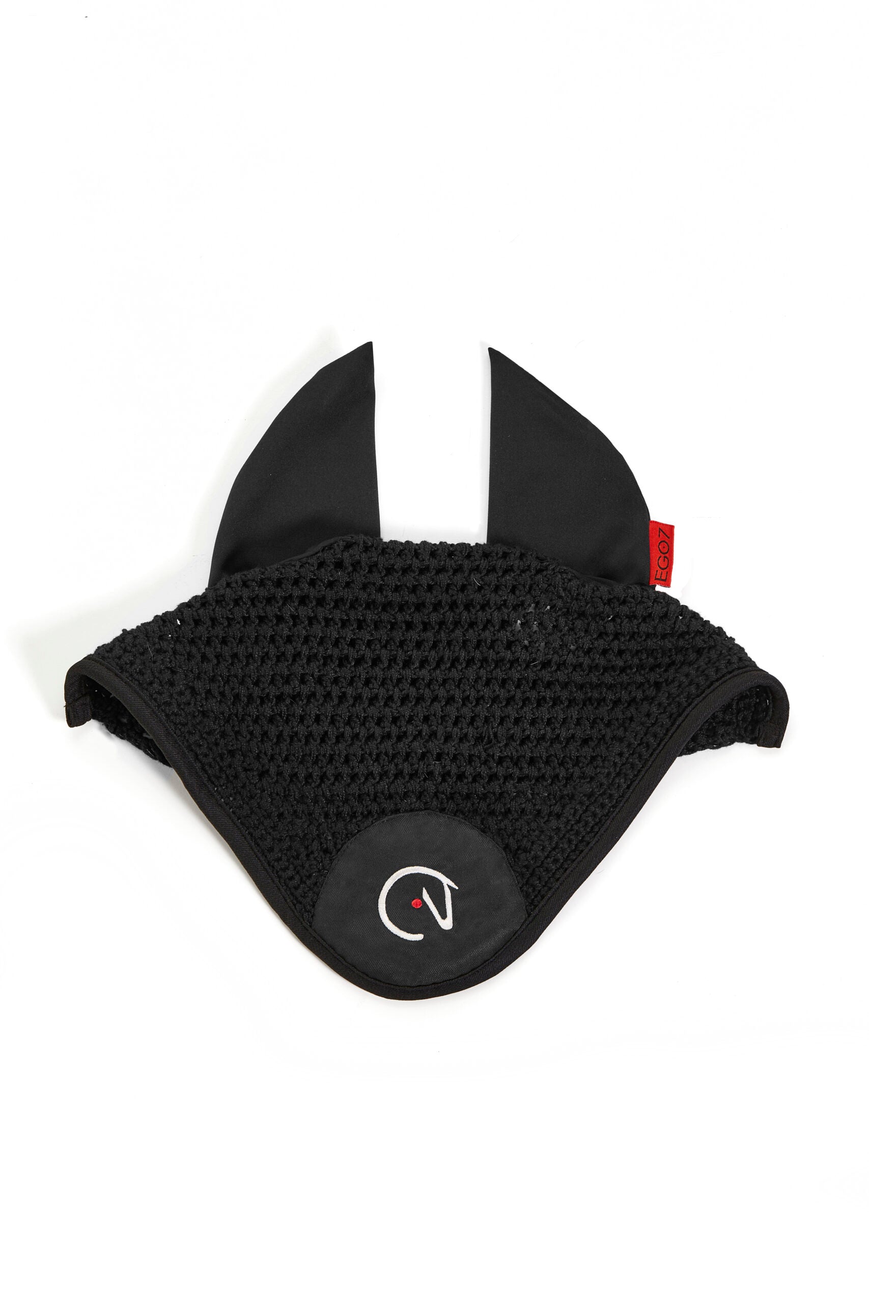 HH Hand crocheted bonnet. Comfortable and extremely breathable, ears made of 4-way stretch fabric. Horse Head logo on the front. Extra-long back to keep it tucked underneath bridle. Italian designed shape. Keeps insects out and reduces noise. Contrasted details and embroidery, matchable to HH saddlepad and HH rug.