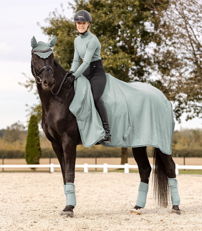 Elegant fleece rug with softly padded collar in the withers and neck area. The fleece rug is in a high quality antipilling fleece and ensures an optimum wick-away function. With toning decorative cord and a glittering Waldhausen lettering.