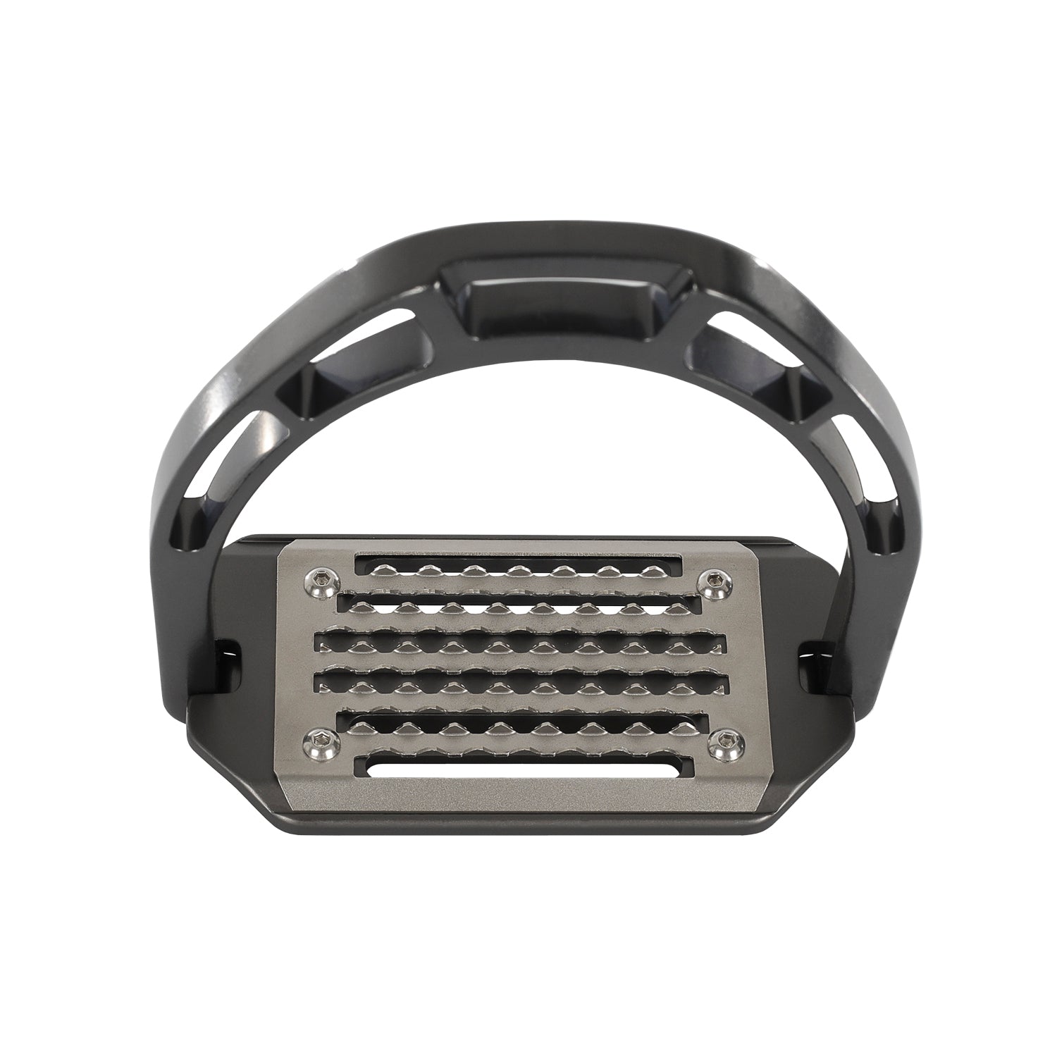Planta superioara este realizata din otel inoxidabil, cu găuri orizontale lungi. Banda de rulare înclinată la 5° îi ajută pe călăreți să-și asume poziția corectă , ameliorând tensiunea la glezne, gambe, genunchi și șolduri.