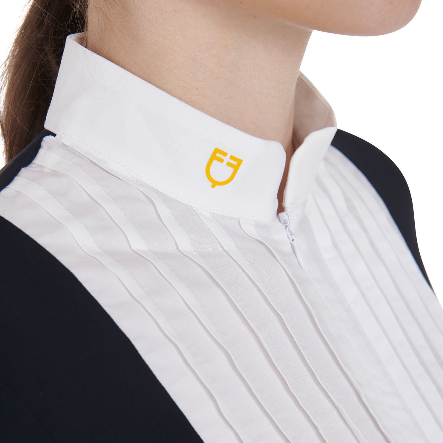 Cămașa de Concurs este perfecta pentru competiții, este împodobita cu o închidere lungă cu fermoar și un guler mandarin din bumbac cu sigla Equestro.