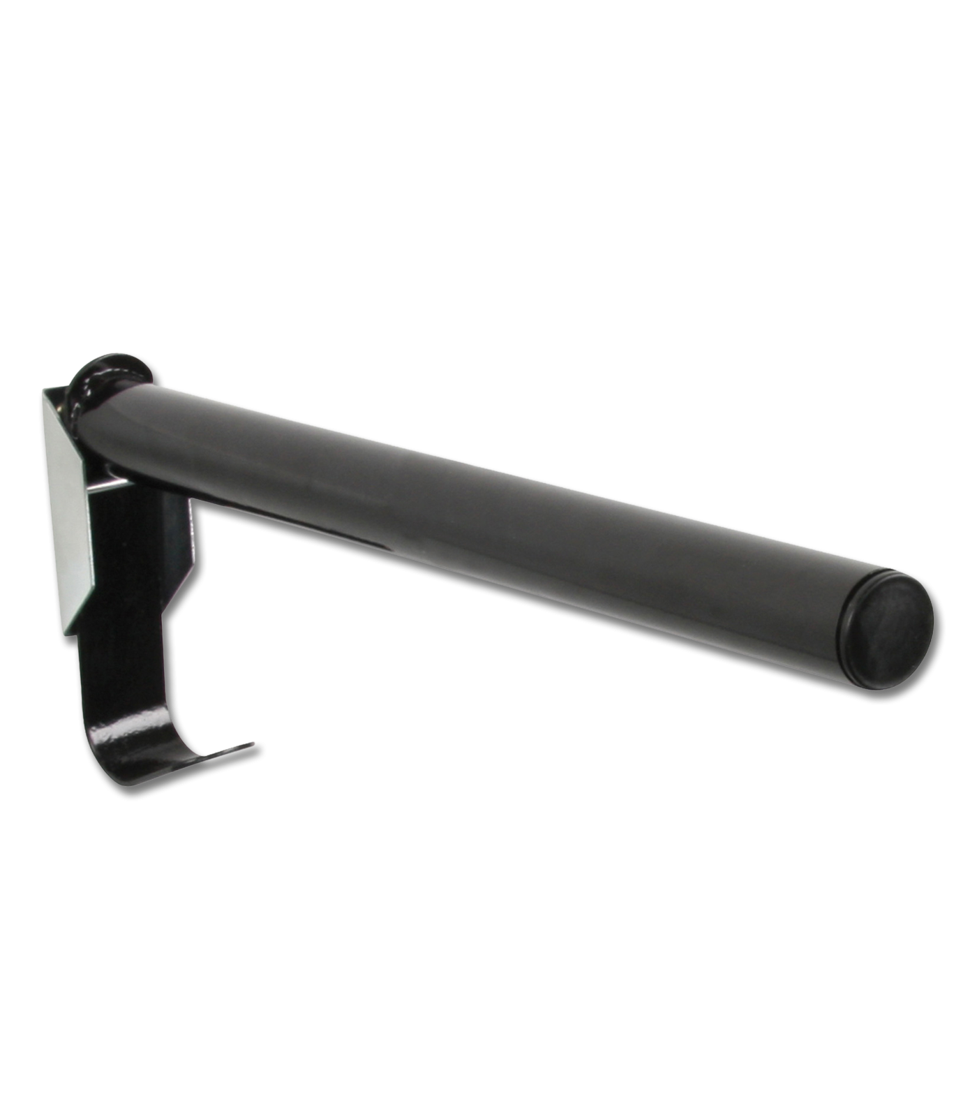Suport rotund pentru șa cu capăt din cauciuc. Când nu este utilizat, suportul poate fi pliat pentru a economisi spațiu. Include cârlig pentru căpăstru.