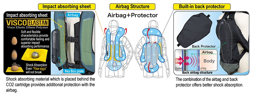 Aceste veste sunt cele mai testate veste cu airbag de pe piață. Testele au căut în caz de impact, vestele cu airbag reduc accelerația capului cu mai mult de 50% și a corpului cu peste 70%.