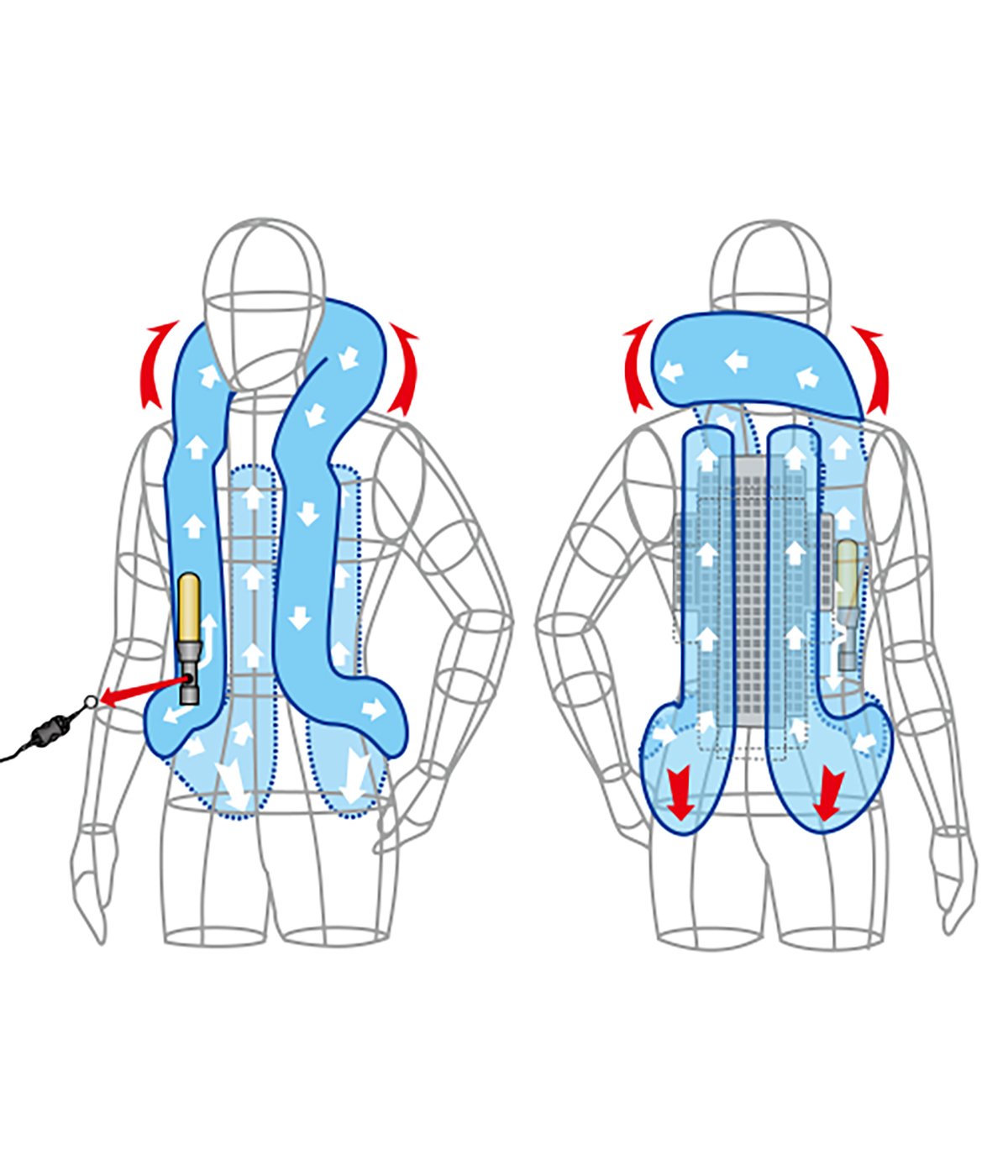 Modelul ST – H ofera aceeasi protectie a gatului si a coloanei pentru care sunt cunoscuti producatorii Mugen Denko Japan cu vestele HIT-AIR.
