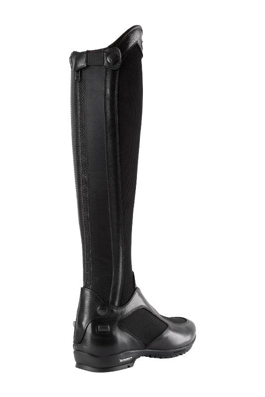 Moliciunea și flexibilitatea excepționale ale pielii de bivol, combinate cu banda elastică dublă, frontală și posterioară, permit cizmei să se muleze perfect pe picior. Rezultatul este un suport optim și o sensibilitate sporită în timpul călăriei. Modelul este echipat cu o talpă nouă, fabricată din cauciuc 100% — SOLES BY MICHELIN, pentru aderență și durabilitate superioare.