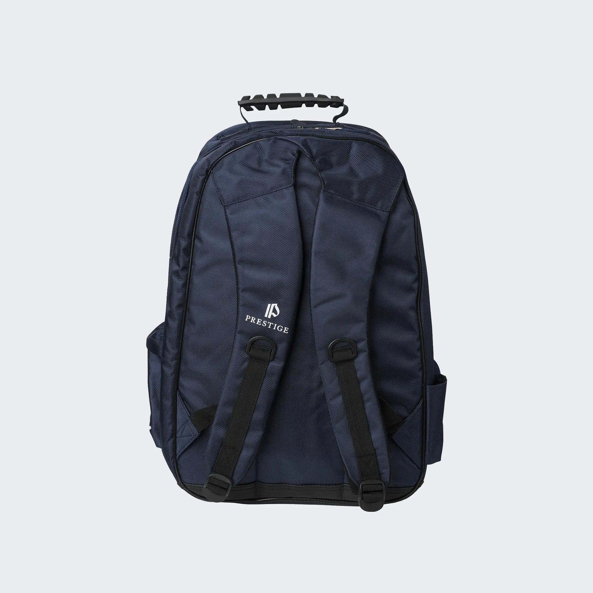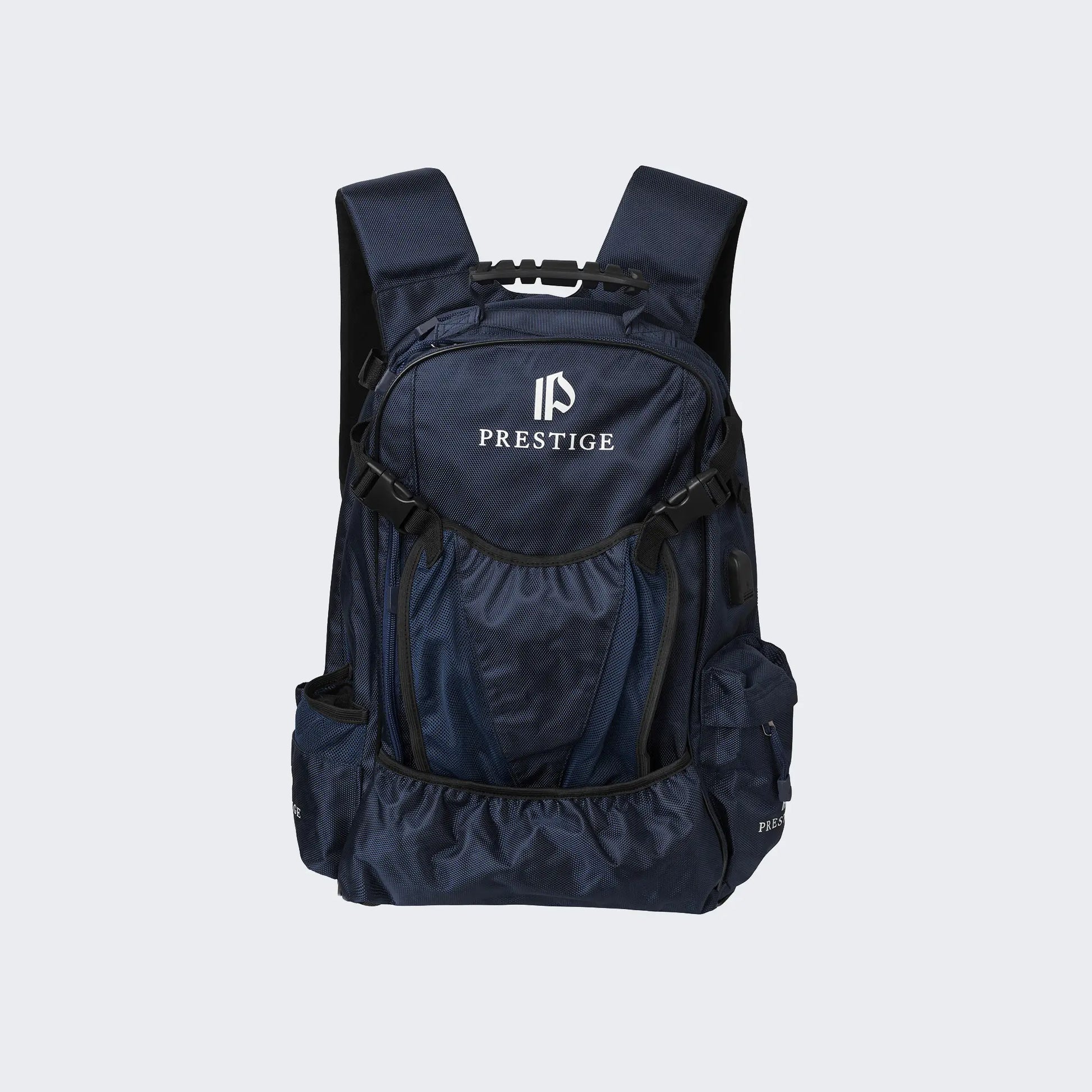 Rucsac cu sigla Prestige Italia. Rucsac albastru cu diferite compartimente pentru echipamentul esențial al călărețului.