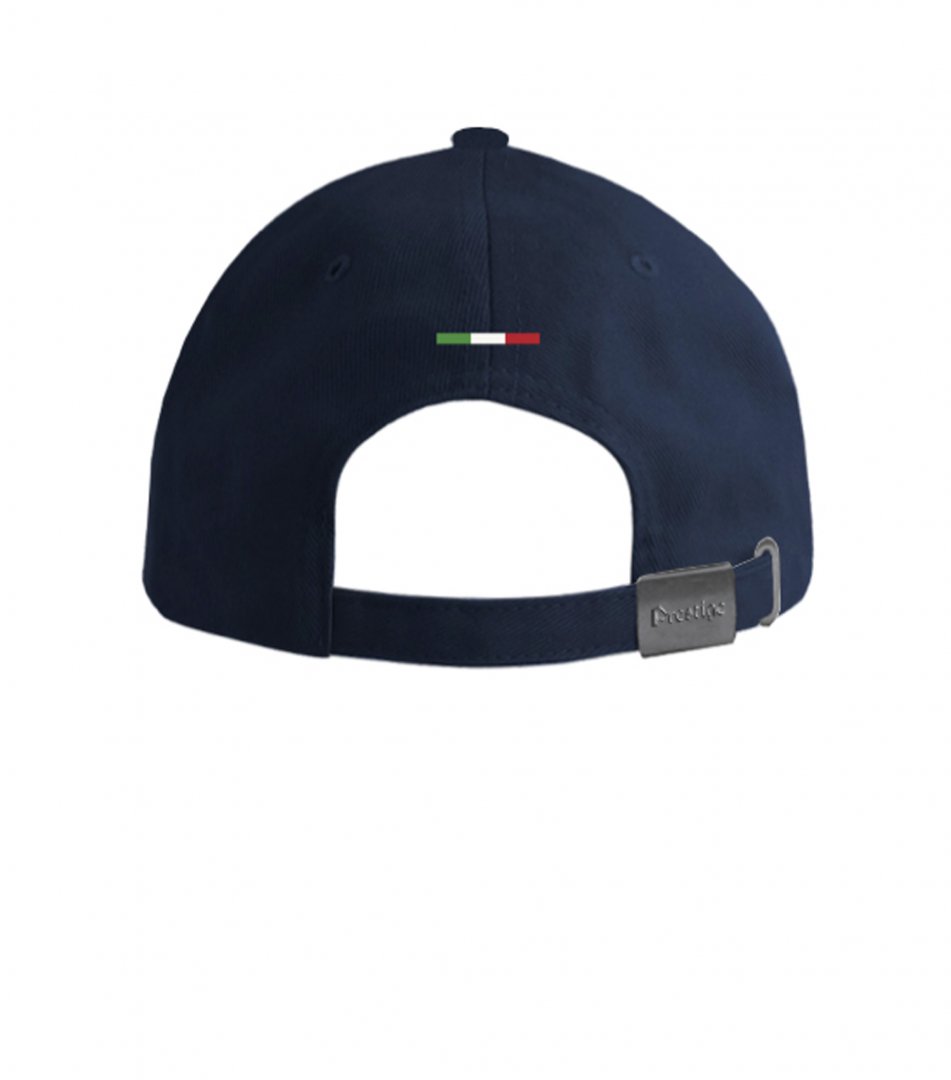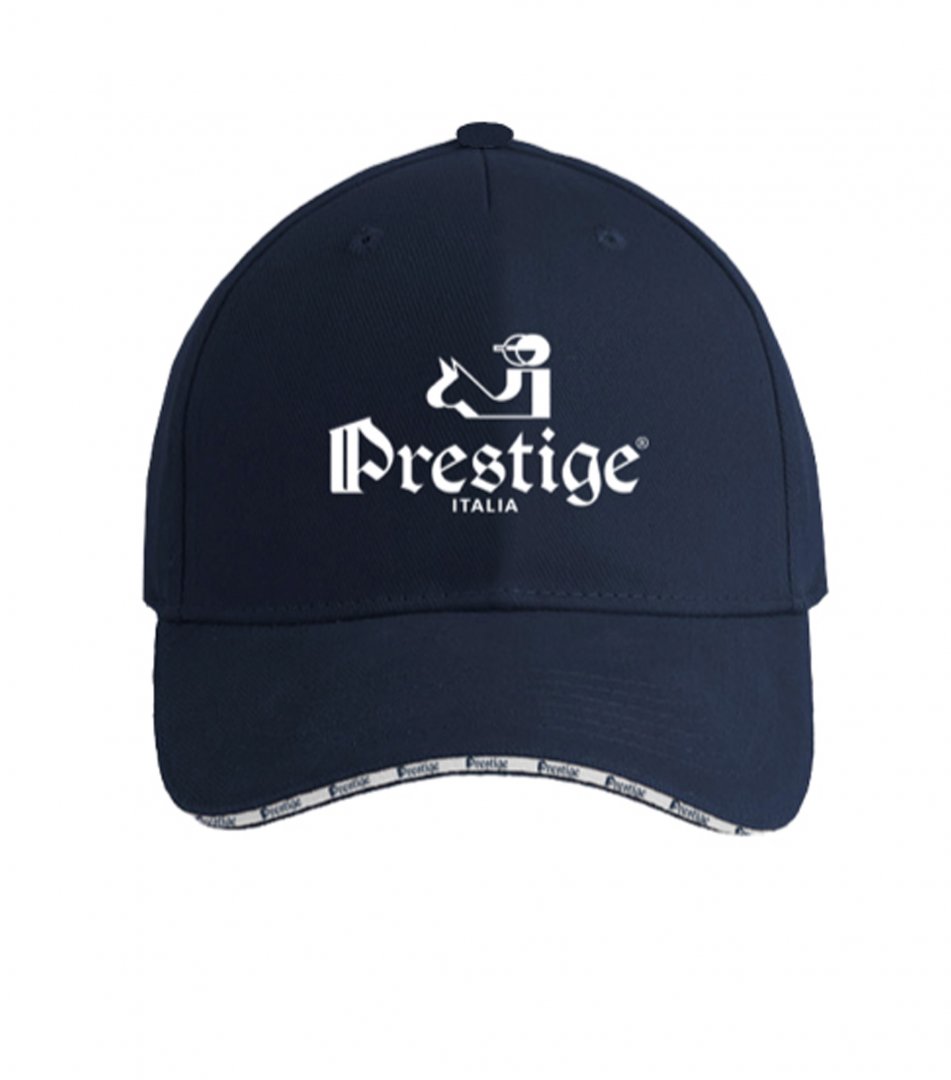 Șapcă albastră sau albă cu sigla Prestige Italia. Logo brodat cu cusături albastre sau argintii. Material: 100% bumbac.